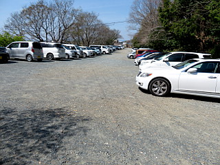 | 神石山山頂直下から見る富士山 | 葦毛湿原駐車場周辺も春色に染まる | 車が溢れる葦毛湿原駐車場 |