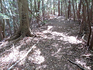 | 山行記 | ●吉祥山麓でコケリンドウを観ている時に、財賀寺でギンランが咲き始めたという情報を得た。この日は、最初に萩の善住禅寺から吉祥山麓へ来ていて、財賀寺へ行くにはまた戻ることになるのだが、気になるので行ってみるいくことにした。 ●久しぶりの財賀寺で、勝手がわからないが、とにかく財賀寺の上の方ということしかわからないので、本坊前の駐車場に車を停め、文殊堂を参拝した後、文殊堂の左手に続く遊歩道と書かれた道を上がっていくことにした。 ●遊歩道ということだが、墓に出て、その上は藪っぽい道があるだけだ。それでも、あまり人が歩くことが無い道なのだろうと思いさらに登っていくが、道はしだいに不明瞭になり、傾斜も急になってきた。 ●その時点で、この道ではないということは薄々判ってきたが、赤テープもあり、そのまま登っていけば豊川自然遊歩道に出るのは判っていたので、最後のヤブを登って行くと、思ったとおり整備された豊川自然遊歩道に飛び出した。 ●ここまで来れば、上の観音山までは遠くないので、ギンランは帰りに探すことにして、急遽、久しぶりの観音山まで行くことにした。緩やかな尾根道を進んでいくと、すぐに「財賀寺近道」の看板が現れたが、本来ならこの道を登ってくるのが正しかったようだ。 ●その先では階段の急登も現れ、やがてテーブルとベンチのある明るい草地に出る。かつてはここからも展望があったのだろうが、現在は植林が伸びて何も見ることができない。 ●さらに登っていくと、また財賀寺への分岐が現れ、最後の急登を登り切ると観音山山頂だ。観音山山頂は明るい広場になっているが、植林が一層伸びていて、全く展望が無くなってしなっていた。 ●20年以上前だが、山頂の南面は皆伐されていて三河湾などの展望が大きく開けていた。4年前に訪れた時には植林が大分伸びていたものの、何とか三河湾や新東名などを見ることができたのだが、現在は何も見ることができなくなっていた。 ●少し観音山山頂で過ごした後来た道を戻り、先程の「財賀寺近道」の看板から財賀寺へ下る。ギンランを探しながら下っていったが、結局ギンランは見つけることはできなかった。その代わり、ギンリョウソウは各所でよく咲いていた。 |