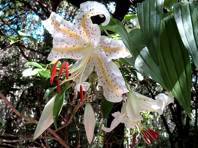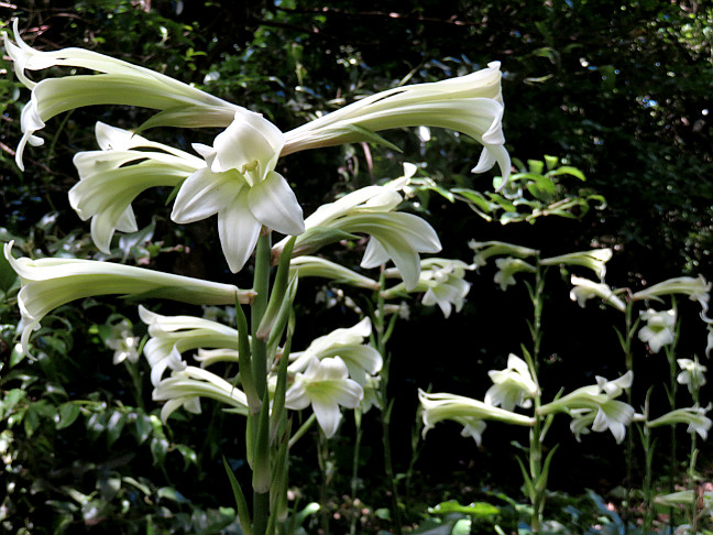 | 満開のウバユリの群生が見られた梅雨明け直後の田原アルプス | ||