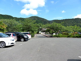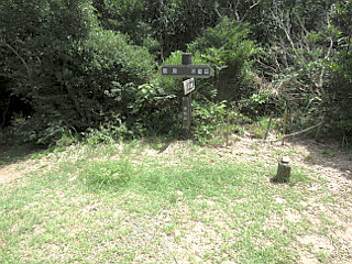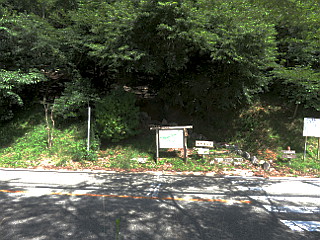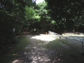| 滝頭公園駐車場と衣笠山 | 衣笠自然歩道入口から山道に入る | 松尾岩コースの入口となる林道終点 |