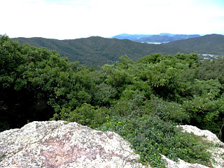 | 展望台のある衣笠山山頂 | 桟敷岩と渥美半島の山々 | 衣笠山と滝頭山の鞍部となる仁崎峠 |