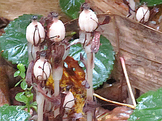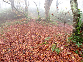 | 山行記 | ●ワクチン接種も終え、緊急事態宣言も解除になったのを機に東北遠征に出かけたが、天気予報は今一つだ。豊川を前日の昼に出て、天気予報を細目にチェックしながら19時過ぎに仮眠予定場所である菅生PAに到着した。 ●ところが、一寝入りした後、天気予報をチェックすると、11日に登る予定だった七時雨山は11日雨予報に変わり、10日なら曇りということで、10日に登る予定だった泉ヶ岳は11日も曇りということなので、急遽両者を入れ替えることにした。 ●とは言っても、仙台の泉ヶ岳から八幡平市の七時雨山はかなり離れているので、およそ260kmの真夜中の大移動になった。そして、岩手山SAで仮眠し、早朝に朝食を済ませて七時雨山登山口の田代登山口を目指した。 ●しかし、七時雨山方面は濃い雲に覆われていて見ることができず、行くに従い道は濃い霧に包まれてきて、対向車の接近が確認し難くくて危険な程だ。しかも、登山口付近になると霧のような細かい雨も降りだした。 ●田代登山口に着くが、何台か停まっていた車もどうするのか迷っているようだった。こちらは、遠方まで来ているので、このくらいの雨ならと支度を始めたが、もちろん地元の山ならこの天気では山は登らない。 ●カッパ上下とスパッツを装着して、七時雨山登山口の看板のある所からゲートを開け閉めして草地を緩やかに下っていく。道沿いにはノハラアザミやエゾリンドウ、ノコンギクなどが咲いているが、雨で傷んでおり時期的にも既に盛りは過ぎている感じだ。 ●草地を下り切り湿地を通り抜けると牧草地を歩くようになる。牧草地は分岐が多く、ガスで視界がほとんど無いのでGPSで確認しながら進む。1合目を過ぎると樹林帯に入り、クマ避けの鳴り物が設置されているのでそれを鳴らして先へ進む。 ●以降は、色付き始めた落ち葉の樹林帯を登っていく。雨はいつの間にか止んだようだが、濡れた木々の葉から落ちる水滴が雨のように降ってくる。5合目辺りから傾斜が増し、近い間隔で現れる6合目から8合目の標識を見送りながら登っていく。 ●9合目を過ぎ、アップダウンをしながら幾つかのピークを乗越すと、やがて七時雨山北峰に着く。北峰には一等三角点があるが、相変わらず濃いガスが垂れ込めていて展望は一切無く、双耳峰のもう一つのピークの南峰すら確認することができなかった。 ●北峰から南峰へ向かうが、意外に急坂で、鞍部から南峰への登り返しも急だ。七時雨山南峰は北峰よりも若干標高が高く、山頂の標識も南峰にあるので、ここが山頂ということだろう。もちろんここもガスが濃くて展望は望むべくも無い。 ●下山は来た道を戻るが、濡れた登山道は登りよりも下りの方が滑りやすいので慎重に下った。平日ということに加えこの天候にもかかわらず、度々登ってくる登山者とすれ違った。下山後は七時温泉憩の湯で汗を流した後、この日の宿泊場所である盛岡市内のホテルへ向かった。 |