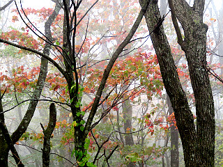 | 七時雨山山頂となる南峰 | こんな光景が多く見られた | 紅葉も始まっている |