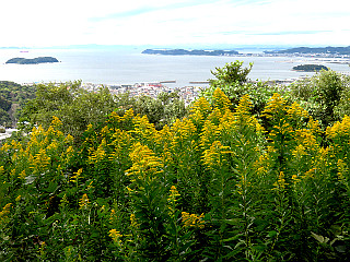 | 潮見展望台から見る渥美の山々と三河湾 | ゆうやけ展望台から見る蒲郡市街と三ヶ根山 | ノコンギク |