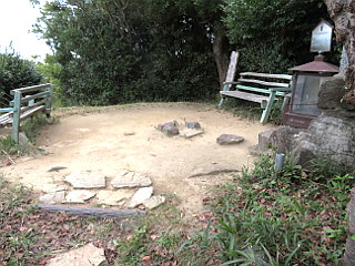 | 御堂山登山口 | 丹野城址の石碑がある御堂山山頂 | 御堂山山頂から見る本宮山 |