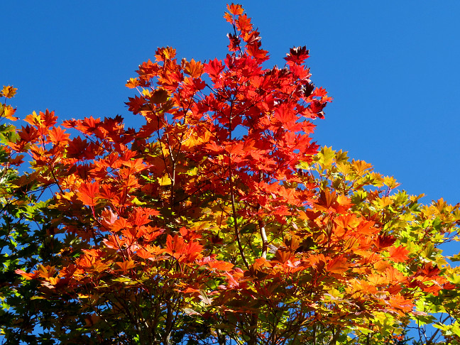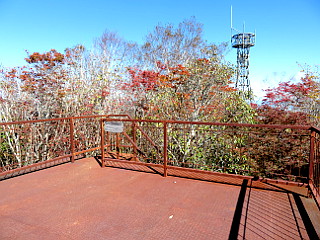 | 青空を背景にした鮮やかな紅葉 | 蛇峠山山頂の展望台 | ||