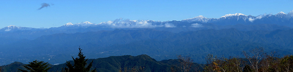 | 狼煙台跡から見る仙丈ヶ岳、北岳、間ノ岳、農鳥岳、塩見岳、荒川岳、赤石岳、聖岳など | |||