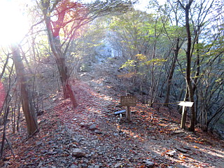 | 男坂女坂分岐から岩壁を見上げる | 山頂手前から見る紅葉 | 山頂手前から見る紅葉 |