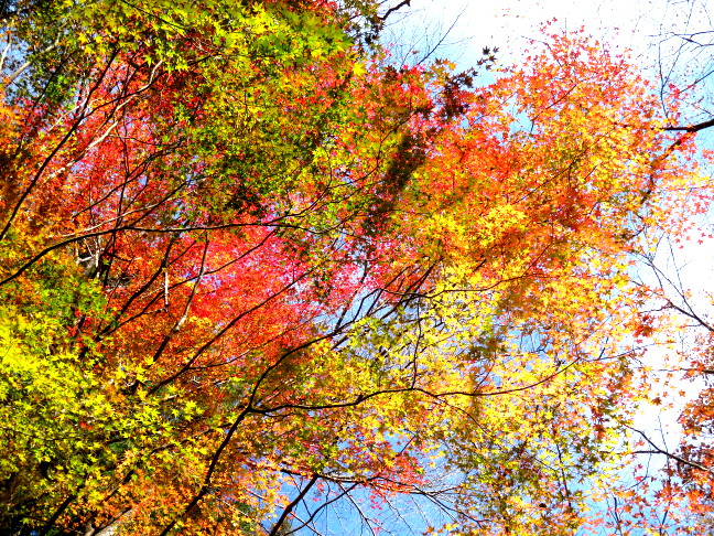 | 山行記 | ●くらがり渓谷の紅葉が見頃を迎えているということなので、それを見がてら本宮山を登ることにした。くらがり渓谷は紅葉祭りの最中なので混雑しているのではないかと、朝早目に豊川を出てくらがり渓谷へ向かうが、相変わらず杣坂峠が路肩の崩壊で通行止めなので、隣の萩坂峠を通る。 ●8時前にくらがり渓谷駐車場に着いたので、第二駐車場に車を停めて、くらがり渓谷のゲートを潜り、渓谷沿いを緩やかに登っていく。早朝なので本宮山の北側になるくらがり渓谷にはまだ日が当たらず、木々が紅葉しているのはわかるのだが、写真映えはしない。しかし、それも計算の上で、まずは本宮山山頂を目指す。 ●この日もよく冷え込み、日陰の渓流沿いなので寒さが身に染みる。キャンプ場のエリアを過ぎ、さらに登っていくとようやく紅葉した木々の上部に日が当たり始め、なかなかいい感じだ。平日のこんな時間だが、もう歩いている登山者やトレランで既に下ってくる人にも出会った。 ●林道には、伐採作業のため、まぼろしの滝より上部は土日祝日以外は通行止めという看板があったが、まぼろしの滝のすぐ上の看板は見えないように裏返してあったので、紅葉祭りの間は平日でも通ることができるようだった。まぼろしの滝辺りから林道は急になり、大きく曲がりながら高度を稼いでいく。 ●やがて伐採地に出るが、日も当たり始め温かい。さすがにこの時期、花はほとんど見当たらないが、よく晴れているので遠くの山までよく見える。馬の背の先では伊吹山や鈴鹿の山々、雪で真っ白になった白山連峰、その手前には名古屋市街地も見え、名古屋駅前の高層ビル群も確認することができた。 ●伐採地から再び植林帯に入ると傾斜も増してきて、やがて本宮山駐車場の辺りに飛び出す。この辺りから見る本宮山の山頂部の鉄塔群が、青空と筋状の雲を背景にいい感じだ。本宮山山頂へは本宮山スカイラインを渡り、急な舗装道を登る。本宮山山頂には一等三角点があり、遠くからでもわかる電波施設の鉄塔群が林立している。 ●展望は南側に大きく開け、豊川、豊橋市街や三河湾、渥美半島、遠州灘も一望できる。本宮山は800m近い標高があるため、特に田原アルプスなどは、他の山から見るのとは高度感が違い、また新鮮に見える。北には御岳や白山、伊吹山、恵那山などを見ることができるが、鉄塔群や樹木の間からなので、いろいろと場所を変えいいポジションを見つけなければならない。 ●この感じならなら富士山も見ることができるのではないかと、砥鹿神社奥社方面へ行ってみることにした。山頂から赤い橋を渡り、鳥居を潜って奥社方面へ緩やかに登っていくと富士山遥拝所があるが、まずは砥鹿神社奥社を参拝してから寄ることにした。富士山遥拝所からは山頂部分だけ雲を乗せた富士山を見ることができた。 ●富士山遥拝所からは本宮山駐車場まで行き、そこからは来た道を下り始めた。思ったとおり、渓谷にも日が差し込み始め、紅葉の木々が逆光で光り輝いている。観光案内所が近付くに連れ、登山客や紅葉狩りの観光客が増え、平日にもかかわらず紅葉祭りのくらがり渓谷は賑わいを見せていた。 |