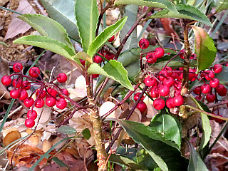 | フウトウカズラ | アオキ | ミヤマシキミ |