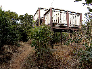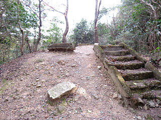 | 衣笠自然歩道入口 | 林道終点の松尾岩コース入口 | 展望台のある衣笠山山頂 |