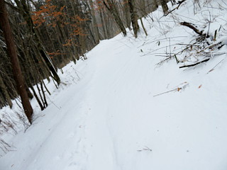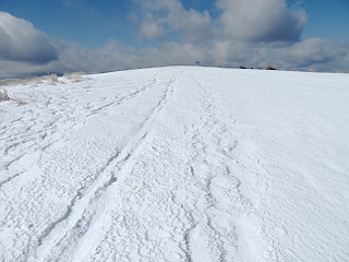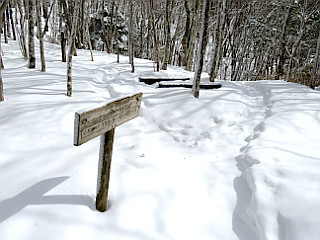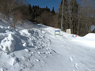 | 山行記 | ●この冬最後の大寒波に見舞われたこの日、雪遊びをするために面ノ木を訪れた。車はスタッドレスタイヤを装着しているので大丈夫とは思いながらも、山道を避け、津具から茶臼山高原道路経由で面ノ木第一園地を目指した。 ●津具までほぼ乾燥状態だった路面は、標高が上がるにつれ雪が目立ち始めた。折本のインターから茶臼山高原道路に入ると、急に路面の雪が多くなってきた。 ●茶臼山高原道路なので、通行する車も多くて大丈夫だと考えていたが、路面はしっかりと凍っていてブラックアイスバーン状態。ちょっとした坂にさしかかった時、ついにスリップして進めなくなってしまった。 ●仕方がないので少し下がり、緩やかにアクセルを踏むと少しは進むことができたのだが、すぐにスリップして同じ状態になる。そんなことを何度も何度も繰り返し、なんとか面ノ木第一園地駐車場まで到着することができた。 ●幸い、その間1台も外の車に合うことがなかったので大事になることはなかったが、この路面状態では、スタッドレスタイヤ装着でも二駆での通行は難しいようで、面ノ木第一園地駐車場に着いても数台の車しか停まっていなかった。 ●面ノ木第一園地近くの気温計は−7度、目的のひとつであった霧氷も観られる。気を取り直してスノーシューを履き、まずは井山へ向かう。除雪された県道を横断して井山へ続く十分雪のある舗装道を登る。 ●登るにしたがい霧氷に覆われた天狗棚山頂部が見えてきていい感じだ。それでも風が強く寒いので、カメラの操作などで手袋を外すと手が痛くでたまらない。 ●樹林帯を抜けると吹きさらしになり、発電用の風車もただならぬ音を立てて回っていた。やがて、井山山頂に着くと展望が開ける。遠くの山は雲に覆われて観ることができないが、周りの山々の山腹の霧氷が綺麗だ。 ●井山山頂で寒さに耐えながら霧氷を楽しんだ後、一旦面ノ木第一園地まで戻り、今度は天狗棚へ向かう。面ノ木第一園地から冬枯れた樹林の中を登るのだが、意外に傾斜がきつい。 ●無雪期は、傾斜が急になる上部はジグザグに道がつけられているのだが、今は雪に覆われているので、トレースは直線的でなかなかの急登だ。それでも、それを登りきると天狗棚展望台から天狗棚へ続く稜線の一角に出る。 ●そこからは、積もった雪で階段の見えない斜面をひと登りすれば、天狗棚山頂に着く。天狗棚山頂は、樹林に囲まれ展望は無いが、木々に付着した霧氷が青空を背景に美しい。 ●天狗棚山頂でしばらく霧氷を楽しんだ後、せっかくなので天狗棚展望台へも寄っていくことにして、先程の面ノ木第一園地下降点を見送り稜線を進む。意外にアップダウンのある稜線の下りは、スノーシューでは大変な個所もある。 ●進むにしたがい木々の霧氷は少なくなり、雲が多くなってきた。やがて天狗棚展望台に着くが、ついに雪が降り始め、展望は悪くなる一方だ。仕方がないのでそこそこにして戻ることにする。 ●帰りは天狗棚展望台に近い面ノ木第一園地への下降点から下る。雪はさらに強くなり、山腹道が見えない程雪が積もる箇所もあり、慎重に下る。やがて天狗棚、天狗棚展望台分岐まで来ると、後は来た道を下った。 ●面ノ木第一園地に着いた時の気温は−7度と依然低いままで、訪れる人も疎らだ。車に乗り込むと、茶臼山高原道路を慎重に下り、帰路に就くが、豊川に帰ってもまだ雪がちらついており、翌朝豊川でも雪景色になっていた。 |