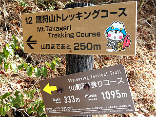 | 舗装道出合 | スノーシューを外して雪の無い山道を登る | 手厚い案内が山頂へ導いてくれる |