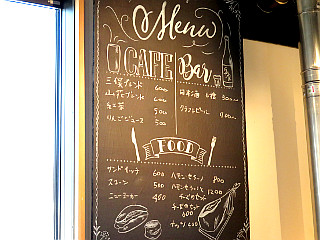 | 三俣山荘図書室の店内 | 三俣山荘図書室のメニュー | 三俣山荘図書室の入口と外観 |