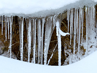 | 雪の積もった美しい木々 | 立派なつららも | カケス |