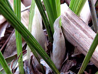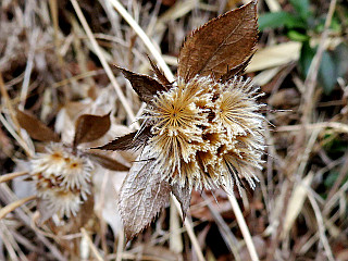 | シュンランはまだ蕾 | ドライフラワーのようになったオケラ | この時期は咲いている世界の桜は少ない |