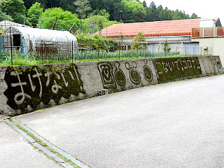| 662m高地 | 舗装道出合 | 昨年からあるコケを削って書かれたメッセージ |
