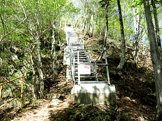 | 面ノ木第三園地の登山口 | 金属製の急な階段を登って天狗棚展望台へ | 天狗棚展望台 |