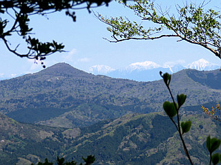 | 天狗棚展望台から見る恵那山、大川入山、蛇峠山 後方の雪山は南アルプス | 天狗棚展望台から見る茶臼山と南アルプス | |