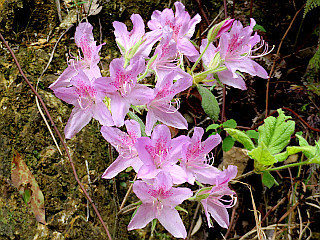 | 山行記 | ●このところ天気の変動が激しく、なかなか休みの日と晴れの日がかみ合わず、直前まで天気予報をチェックしながら、晴れということならば急遽行く先を決めて出かけるということが多く、これでは遠くの山は計画できない。 ●この日は何とか天気は良さそうだったので、久しぶりに五葉湖周辺の山を訪れることにしたのだが、日曜日なので人が多いのは覚悟の上だ。とは言っても、例によって朝早いので、五葉湖駐車場はまだ二台しか車は停まっていなかった。 ●早速堰堤と湖畔道路を歩いて野鳥の森入口へ向かう。前回来たのは4月上旬なので、その時期と比べ咲いている花は大きく変わっており、現在はスイカズラやイボタノキなどが目立ち、イネ科花粉症の人の大敵のカモガヤもよく咲いていた。 ●野鳥の森入口からコンクリートで舗装された道を登り、レンゲツツジの小径を通って作業道に出る。以降それをしばらく歩くのだが、道沿いではテイカカズラやニガナなどがよく咲き、少ないがシロバナクサナギオゴケなども観ることができた。 ●作業道は送電線鉄塔のある広場で終わり、後は山道を進んで、赤い実の小径を分けると五葉山へ向けて直線的で急な坂を登る。急坂が落ち着き、最後の短い急坂を登り切ると五葉山山頂に到着する。 ●五葉山山頂で少し過ごした後市境稜線をアップダウンしながら進むと、五葉城址への分岐に出るが、まずはそのまま平尾山方面へ進む。並行している林道から離れると急坂を登るようになり、それを登り切ると高城砦跡に着く。 ●高城砦跡から一旦下り、以降、自然のアップダウンに加えて土塁や堀切などの人工的なアップダウンを繰り返しながら徐々に登っていく。途中展望の開ける岩場があり、そこから一登りで道は少し下るが、その先が平尾山山頂だ。 ●平尾山山頂も五葉山と同様展望は無いが、弓張山地主稜線が貫き、道もより明瞭になる。平尾山山頂から急な坂を下ると右手に展望が開け富士山などが見られるところだが、この日は雲が多く見ることはできなかった。 ●さらに下ると送電線鉄塔の下に出る。そこからは弓張山地主稜線から離れ左手の鉄塔巡視路を新城方面へ下る。すぐに作業道と合流するが、最後の最後はロープの張られた不安定な下りを下りなければならない。 ●以降その作業道を歩く。以前草刈りがされた作業道も、草が徐々に伸びやや荒れ気味だ。道沿いではコゴメウツギやバライチゴ、ジシバリなどが咲いていたが、まだ咲いていなったコアジサイの花芽が多く見られ、それらが咲く頃が楽しみだ。 ●作業道は、やがて林道に下り立ち、その林道を少し進むと弓張山地主稜線への分岐を経て五葉城址に至る。五葉城址は木々が大きく刈り払われ、展望が開ける所だが、富士山や南アルプスなどの遠くの山は見ることができなかった。 ●五葉城址で少し過ごした後、いつものとおり林道を下る。林道沿いでは、ハナニガナやシライトソウ、ジシバリ、ウツギなどが咲き、珍しくサルナシの花なども観ることができた。 ●林道はいつの間にか舗装道に代わり、車止めを通って湖畔道路と合流する。湖畔道路ではウツギやエゴノキ、イボタノキ、イタチハギ、カキ、ソクシンランの花などが目立っていた。さらに進むと朝、車を置いた五葉湖駐車場に着く。 |