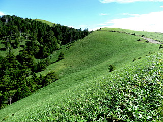 | 山行記 | ●先日梅雨入りが発表されたのだが、早くも梅雨明けが発表され、早速この日も猛暑の予報だ。最低気温も20度を上回り、加えて湿度も高く朝から蒸し蒸ししている。そんな中、オオヤマレンゲやシナノショウキランを観に富士見台を訪れることにした。 ●年のせいか、未明の2時半頃目が覚めたので、高速の深夜料金を狙って3時過ぎに自宅を出て、深夜料金が適用される4時前に岡崎東ICから高速道路に入ることができたので、後は朝食や買い出しをしながらゆっくり現地へ向かう。 ●結局、6時半前に登山口の大桧駐車場に着いたが、駐車場には既に三台の車が停まっていた。この時間でも既に日差しが強くて暑いが、さすがは標高が高いので、日影に入れば涼しい感じだ。 ●支度を済ますと早速歩き始める。しばらくは神坂峠へ続く舗装道を登っていくのだが、平日の早朝ということもあって車の通行が少ないのでありがたい。 ●道沿いではクルマムグラやツルアジサイ、ニシキウツギ、ヤマオダマキ、シロツメグサ、カモガヤなどが目立ち、ニガナはまだ開いているものが少なく、ヤマブキショウマやリョウブ、ノリウツギ、ヤマホタルブクロなどはまだ蕾しか見られなかった。 ●途中追分登山口を見送ると、オオヤマレンゲが観られるようになる。花はまだ開ききっていないものと、開いて既に変色しているものがあり、ちょうどいいものはなかなか観ることができなかった。 ●舗装道は上部に行くにしたがって九十九に折れ、周囲のまだ明るい緑が鮮やかな山肌や中津川方面を観ることができるのだが、この時間一部ガスがかかっており、すっきりと見ることはできなかった。 ●一時間余りで神坂峠に着くと、ここの駐車場は恵那山方面へ行く登山者の車で既に満杯状態だった。神坂峠からは舗装道ではなく少し登った神坂峠から山道で富士見台を目指すことにした。 ●山道は山腹に付けられた道だが、歩く人が少ないようで、草の露でズボンが濡れる。それでも樹林の中なので微風もあり涼しく、ガスが無ければ恵那山などがよく見えたはずだ。 ●前方に気持ちのいい笹原が広がり、富士見台方面が見え始めると、萬岳荘から登ってくる道と合流する三差路に着く。三差路からは石の多い道を緩やかに登っていくと、トイレなどのある神坂小屋に着く。 ●さらに登れば360度の展望が開けた富士見台山頂だ。この日は、雲が多く御岳や中央アルプス、北アルプスなどは見ることができなかったが、一部雲の取れない部分はあるものの南アルプスの主稜線は観ることができた。 ●富士見台山頂で少し休憩した後、神坂小屋の手前まで戻り、そこから神坂山へ向かう。この時期まだ早いが少しは咲いているだろうと思っていたササユリだが、まだまだのようで、途中で見た蕾も開花までにはもう少し時間がかかりそうだった。 ●分岐からササの中をアップダウンしながら進み、途中の萬岳荘への分岐から一登りすれば神坂山山頂に着く。神坂山山頂は三角点があるが狭く展望も今一つだが、大きな岩の向こうにはササの山肌が美しい富士見台を観ることができる。 ●神坂山からは先程の分岐まで戻り、そこから萬岳荘方面へ下る。すぐに樹林帯の中の濡れた滑りやすい道になるが、それを下り切ると、萬岳荘の横に出る。萬岳荘は平日なので営業はしていないようだが、テラスで一休みして帰路に就く。 ●神坂峠まで舗装路を進み、そこから来た舗装道を下るのだが、峠での工事が始まり、生コン車などの大型車が行き来し、歩行者とすれ違うのも大変なので、緊張しながらの下りだ。 ●しかし、昼近くになり、工事車両の往来も無くなって来たので、今のうちにと、急ぎ足で大桧駐車場まで戻り、細い道は車でのすれ違いも心配だったので、急いで下り、途中クアリゾート湯船沢で汗を流して帰路に就いた。 ●帰りは、時間が早かったので、高速道路を利用せず、一般道で帰ったが、3時間半ぐらいで豊川まで戻ることができた。しかし、街部は予報どおりの猛暑で、途中何処にも立ち寄る気にはならなかった。 |