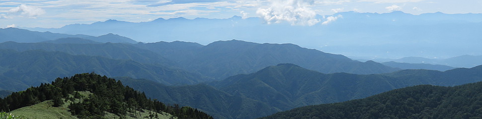 | 富士見台山頂から見る八ヶ岳(左奥)と南アルプスの主稜線 | ||