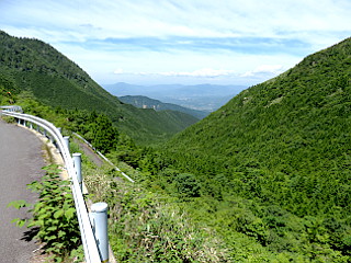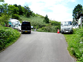 | この日はお休みだった萬岳荘 | 神坂峠は工事中 | 舗装道から見る中津川市街と笠置山 |