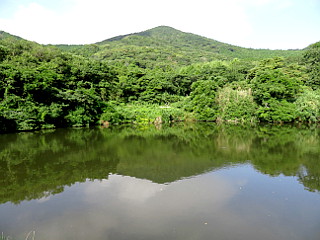 | 滝頭公園駐車場 | 藤七原湿地横の溜池と衣笠山 | 舗装道と未舗装林道の分岐 |