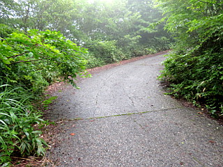 | 馬の背 | 馬の背下の蛇峠山登山口 | 雨なので舗装道1からは舗装道を進む |
