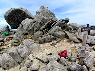 | 行程 | 萱の台バスセンター駐車場━(バス)━しらび平━(ロープウェイ)━千畳敷駅(9:23)・・・乗越浄土(10:13-36)・・・中岳(10:47-56)・・・鞍部(11:03)・・・木曽駒ヶ岳(11:21-59)・・・鞍部(12:10)・・・中岳(12:26)・・・乗越浄土(12:46-13:10)・・・千畳敷駅(13:54)━(ロープウェイ)━しらび平━(バス)━萱の台バスセンター駐車場 | |