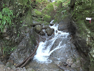 | 山行記 | ●平日に二日連休を取得することができたので、久しぶりに日本百低山の遠征に行くことにした。当初は、川苔山へ行くつもりだったのだが、メインの登山道が通行止めということなので、代わりに同じ奥多摩の2山を目指すことにした。 ●ところが、事前の天気予報は雨マークが並ぶ。それでも直前には、曇りで1日は雨が絡むとのこと。最悪一山でも登ることができればと、決行することにした。 ●前日、少し早く仕事から戻ると、そのまま豊川を出て、厚木PAで仮眠をし、翌日最初に目指す棒ノ折山登山口の白谷沢登山口横の駐車スペースへ向かった。平日でもあり朝早いので、駐車スペースにはまだ一台の車も停まっていなかった。 ●ところが、車を駐車すると、次々に車が訪れ、瞬く間に駐車スペースは満杯状態。さすがは首都圏の山の登山口だ。こちらも支度を済ますと白谷沢登山口から沢沿いの登山道を登り始める。 ●登山口から道沿いにはキツネノマゴやゲンノショウコなどが咲いているのが見えるが、まだ暗くて写真には収められない。道は緩やかに沢沿いを、何度も渡渉をしながら続くが、このところの雨で増水しているのは心配だ。 ●途中、御神木と思われる立派な木とその奥に祠があったが、説明が無いので由来などはわからない。沢沿いの道は徐々に傾斜を増し、渡渉の回数も増えてくる。 ●やがてゴルジュと呼ばれる大岩の間を通過するようになると、水を被る丸木の橋を渡ったり、ロープやクサリで岩をよじ登ったりしながら幾つかの滝を高巻いていくのだが、水量も多いし濡れてよく滑るのでなかなかスリリングだ。 ●今考えれば、駐車場を出発する登山者のロングスパッツの装着率が高かったのが納得できる。ゴルジュ地帯を過ぎて一段落すると、突然舗装された林道に出る。林道の対岸の山道の入り口はベンチが設置され休憩できるようになっている。 ●再び山道に入り、急坂を登っていくと、道は平坦な山腹道に代わり、やがて、岩茸石という大岩のある四辻に着く。ここは、棒ノ折山山頂へ続く木の階段の設置された尾根道を登っていくのだが、せっかくの木の階段は、破損し危険なため通行はできない。 ●やがて広場に出るが、そこがゴンジリ峠と呼ばれる峠で、ここまで来れば棒ノ折山山頂まではあと少しだ。ゴンジリ峠から平坦な道を少し歩くと、山頂へ向けてやや傾斜が増し、やがて棒ノ折山山頂に到着する。 ●棒ノ折山山頂は広く、東屋やベンチとテーブルが多く思い思いの場所で休憩ができる。展望は、樹木や草が伸びあまり良さそうではないが、展望案内板が設置されている。 ●棒ノ折山山頂で少し過ごした後、下山にかかる。下山は来た道を戻ったが、丁度普通の登山者が登り始める時間になり、多くの登山者に出会った。平日ではあるがさすがは首都圏の山だ。結局この日は晴れ間も出て、雨に降られることは無かった。 |