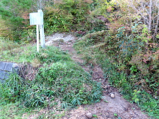 | 蛇峠山登山口 | 紅葉も始まっていた | 舗装道から見る茶臼山、三ツ瀬明神山 |