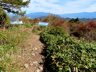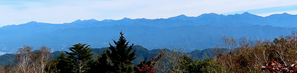 | 山行記 | ●この日予定していたお出かけが急にキャンセルになったのだが、天気が良さそうなので、展望と秋の花が期待できるこの山へ行くことにした。 ●豊川を朝6時前に出て、およそ2時間程で、登山口の治部坂高原駐車場に着いたが、三連休明けの平日だからなのか、朝早いからなのか、広い治部坂高原駐車場には1台車が停まっているだけだった。 ●それでも、朝から雲は若干あるものの青空が広がり、木々の紅葉もぼちぼち始まっているようで、いい感じだ。最初は別荘地内の急な舗装路を登っていく。 ●途中、蛇峠山登山口の標識が現れ、いつもはそれに従って別荘の間を登っていくのだが、早朝でもあり、鈴を鳴らして歩くのは迷惑がかかりそうなので、そのまま舗装道を歩き、阿智村セブンサミットの蛇峠山登山口の看板のところから登り始める。 ●しかし、この道は既にメインの道ではないらしく、朝露で濡れた草でズボンが濡れるが、別荘地からの道と合流すると奇麗に草が刈られていた。 ●道はその後いったん急になるが、その後緩やかに登っていくと舗装道に出る。その舗装道のヘアピンカーブをまわった所から再び山道に入り、緩急しながら登っていくと、大きく開けた馬の背と呼ばれる広場に着く。 ●左に進むと展望所があり、ススキの向こうに蛇峠山の山頂部や隣の大川入山、中央アルプス、八ヶ岳、南アルプスの一部を観ることができる。 ●馬の背から一旦下ると舗装道のゲートがあり、その前が広場となっていて車はそこまで来ることができる。蛇峠山へは、案内に従ってそこから始まる山道を登る。 ●樹林帯の道は緩急しながら続き、途中二度舗装道と交差し、三度目の舗装道出合からは、そのまま左右に電波塔が林立する舗装道を登る。 ●この辺りは、紅葉もまだ浅いがいい感じで青空を背景によく映える。花もマツムシソウやウメバチソウ、リンドウ、ホソバツルリンドウなど秋の花も多く、歩いていて楽しい。 ●やがて、大きな白いドームが現れるがそれが蛇峠レーダ雨量観測所で、その奥が狼煙場と呼ばれる展望地だ。そこからは、馬の背から見えた山々に加え、南アルプスがほぼ全山見える外、大川入山の背後には恵那山も見ることができた。 ●狼煙台跡で展望を楽しんだ後、蛇峠山山頂へ向かう。狼煙台から一旦下り、登り返せば蛇峠山山頂だが、鉄製の展望台は「きけん立入禁止」の黄色いテープが貼られ、登ることができなかった。 ●しかたがないので、展望台の下で栄養補給をした後、狼煙台跡まで戻り、先程と比べ光の当たり方が違う山々の大展望を再び楽しんだ。後は、全て舗装道を歩いて、車を置いた治部坂高原駐車場まで戻った。 |