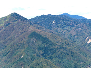 | 狼煙台跡の展望所 | 狼煙台跡から見る中央アルプス | 狼煙台跡から見る大川入山、右奥は恵那山 |