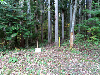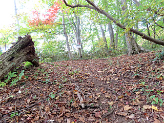 | 「小野の泉」と呼ばれる水場 | 尾根上の広場 | 1223mピーク |