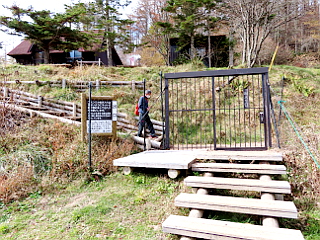 | 獣除けの扉から未舗装林道へ | 山彦荘前から見る入笠湿原 | 入笠山へは山道でも林道でも |
