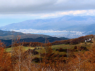| 入笠山山頂から見る諏訪湖と鉢伏山 | 入笠山山頂から見る車山と霧ヶ峰 | 入笠山山頂から見る富士山 |