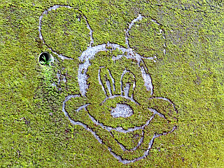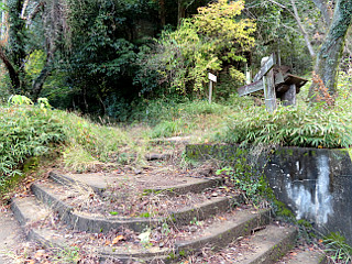 | 高根山山頂 | 舗装道を中小企業大学校瀬戸校方面へ | 法面の苔を削って描かれた落書き |