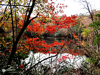 | 山行記 | ●紅葉の名所でもある名刹定光寺は、以前から一度訪れたいと思っていたのだが、これまでなかなか訪れる機会が無かった。そこで今回、紅葉の時期に周辺の2山と合わせて訪れてみることにした。 ●そして今回登る予定の2山は、17年前に訪れて以来で、その時は愛知の130山完登を目指していたので、道樹山、弥勒山と同じ日に、半ばやっつけ仕事で登ったので、あまり印象は残っていない。 ●この日、天気は下り坂だが朝のうちは青空が見られるということだ。しかし、車を置く正伝池周辺はガスに包まれていて視界が利かない状態だった。それでも、歩いている間に晴れることだろうと、定光寺公園の駐車場に車を停めると歩き始める。 ●用意してきた地図によると、正伝池畔から正伝山へ山道に入ることになっているのだが、その山道の入口が見つからない。それでも、同じ場所に出るようなので、そのまま舗装道を進むことにした。 ●少し行くと正伝山から来る道と合流し、反対側には東海自然歩道標識があるので、その未舗装だが緩やかな広い道をしばらく進む。やがて見えてくる舗装道の手前が高根山登山口で、高根山へはそこから折り返して緩やかな木の階段のある道を登る。 ●少し登ると東屋が見えてくるが、そこが高根山山頂だ。高根山山頂は、樹林に囲まれ展望は無く、ピークらしくもないので、山頂表示が無ければ通り過ぎてしまいそうな山頂だ。 ●高根山山頂から下ると舗装道に出るが、東海自然歩道は舗装道を歩いて中小企業大学校瀬戸校方面へ進む。すぐに中小企業大学校瀬戸校方面の入口に着くのだが、そこから東海自然歩道への入口がわからない。 ●東海自然歩道の標識はいろいろあるのだが、その意味がわからず、学校内へ進んで見たり、先程の分岐へ引き返したりで結局30分近く時間をロスしてしまった。実際は学校入口の左にあった標識を見落としていたためだった。 ●気を取り直して、樹林の中の東海自然歩道を進んでくが、黄色く色付いた木々の葉が奇麗で、まだ霧が晴れない林内の光芒もいい感じだ。道はやがて舗装道を跨ぐ橋に出るが、そこが大洞峠で、「クマ出没注意」の掲示が生々しい。 ●大洞峠から道は徐々に上っていき、やがて山星山山頂に着くが、ここも高根山山頂と同じく通り過ぎてしまいそうは山頂だ。それでも、三角点があり休憩のためのテーブルや椅子もあるのでここで一休みすることにした。 ●山星山山頂から一下りで未舗装の林道を横切り、さらにアップダウンしながら下っていくと、トイレのある宮刈峠に着く。宮刈峠は五差路になっており、ここで東海自然歩道から外れるので、下山に使う道を確認して緩やかに下っていく。 ●未舗装だが車の通行した跡が残る広い道は、途中宮刈池を見てさらに下る。薄暗い道沿いでは木々の黄葉が一際明るく目立っていた。また、道が大きく左に回り込むカーブの下には神明社が見えた。 ●道が舗装道に代わり道沿いに民家が見え始めるとすぐに県道に突き当たる。後は県道を歩いて車を置いた定光寺公園第1駐車場へ戻り、荷物を置いてから定光寺へ行こうと思っていたのだが、結局駐車場を通り越し、そのまま定光寺へ向かうことにした。 ●この日は平日なのだが、紅葉の時期だからか参拝者が多く、それらに交じって162段の階段を上って定光寺を参拝し、周囲の紅葉を楽しんだ後、駐車場に戻り、帰途、温泉施設で汗を流した後、時間に余裕があったので高速道路を使わずに自宅へ戻った。 |