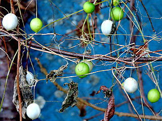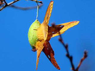 | 宮路山もみじまつり会場 | 空繭に産卵中のウスタビガのつがい | ウスタビガ |