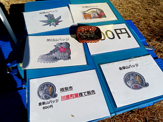 | 宮路山山頂から見る三河湾と渥美半島 | 宮路山山頂の紅葉はいい感じ | 山頂では山バッジの販売も |