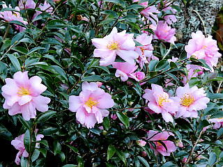 | 駐車場に植えられたサザンカ | 冬も咲くサクラ | ヤブコウジ |