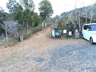| 比丘尼駐車場とおすすめの小径入口 | 比丘尼城址の紅葉 | 比丘尼城址は中宇利丸山と云うらしい |