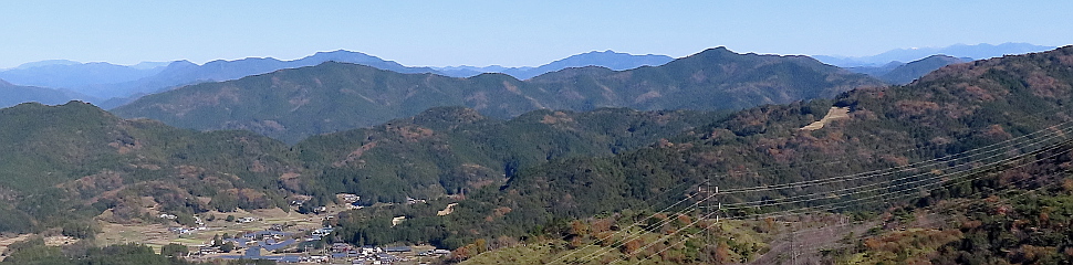 | 展望ピーク直下から見る恵那山、三河の山々、奥三河の山々、南アルプスまでのパノラマ | ||