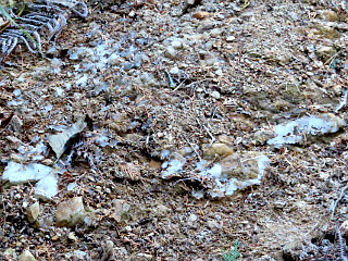 | 凍り付く作業道 | 作業道にはこんな霜柱も | |