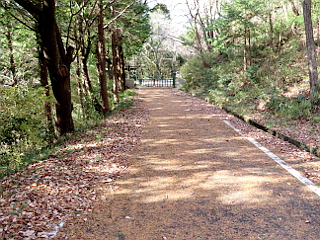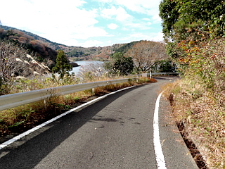 | 蛇穴分岐 | 松の葉が積もる舗装道と車止め | 湖畔道路合流点 |