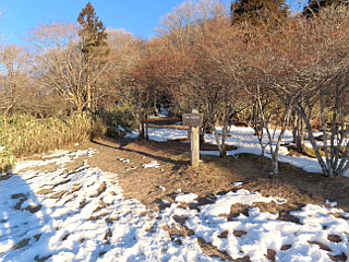 | 山行記 | ●新型コロナウイルス感染症予防のため、ここ何年か中止されていた東栄町古戸地区の花まつりが、前日からこの日にかけて行われるということだが、今年度は感染予防のため地区民だけで行うということだ。 ●花まつり大好きの妻が、そこへ花見舞いだけ届けたいということなので、そのついでに茶臼山へ行くことになった。この時期は何といっても霧氷の樹々が観たいので、未明に豊川を出て、花まつり会場に寄ってから茶臼山へ向かった。 ●このところ雪は降っていないようで、路面にはほとんど雪は無く、車は走りやすいのだが、山肌の樹々を見ても霧氷が付いている様子はない。それでは、茶臼山の山頂部はどうかと思ったが、やはり霧氷は見られずがっかりだ。 ●それでも、日の出直後の南アルプスのシルエットは雲一つなくくっきりと見えるので、第二駐車場に車を停めると、とりあえずスノトレを履いて茶臼山山頂へ向かうことにした。気温はマイナス5度だが、風があるので体感気温はもう少し低いはずだ。 ●道の雪は深い箇所でもくるぶし程度で、雪の無い部分も目立つ。それでも気温は低いので雪の無い所では立派な霜柱が観られそれを観るのも楽しい。自由の広場まで登ると、まだシルエットの南アルプスが良く見えた。 ●振り返れば、隣の萩太郎山の斜面を利用した茶臼山高原スキー場で3基のスノーガンがフル稼働しており、その背後には碁盤石山や宇連山、平山明神山などの奥三河の山々や、本宮山なども確認することができた。 ●自由の広場から樹林帯に入ると展望台の脇を通って木の階段の急な斜面を登る。それを登り切ると道は一旦平坦になり、森の広場分岐を分け、長野県側への道を見送り、そこから急な階段を登る。 ●霜柱を観ながら急坂を登り切ると茶臼山の稜線の一角に出る。その稜線の一角からも、萩太郎山や奥三河の山々を観ることができるが、ここでは自由の広場で観ることができなかった三ツ瀬明神山を観ることができた。また、よく見ると萩太郎山山頂の右奥には、浜松駅前のアクトタワーとその奥には遠州灘も観ることができた。 ●稜線の一角から緩やかに進むと三角点や展望台のある茶臼山山頂に到着する。展望台に上がると多少樹々の枝が邪魔になるが、南アルプスや奥三河の山々を観ることができた。 ●それでも、恵那山や中央アルプスなどは見ることができないので、かつて鉄製の展望台があった場所から少し下った所で、なんとかそれらを観ることができたが、今さらながら鉄製の展望台が老朽化により撤去されたのは残念だ。 ●再び茶臼山山頂まで戻ると、もう一度展望台に上り、先程よりもよく日が当たってきた南アルプスの展望を楽しんだ。下山は来た道を戻ったが、時間も早いので、青空に頻繁に行き来する旅客機や山々の展望を楽しみながら下った。 ●途中、突然前方を一頭のシカが横切ったと思ったら、その後も次々とシカが猛ダッシュで横切っていったのには驚いた。車を置いた第二駐車場に戻ると、久しぶりにとうえい温泉で温まり、昼食を頂いてから帰路に就いた。 |