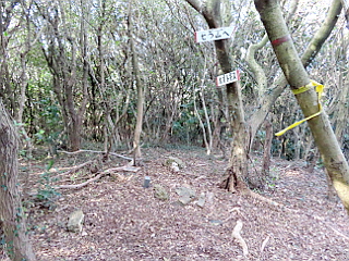 | 山行記 | ●この日の天気予報は、朝の気温は低いが良く晴れて風も無いので過ごしやすいということだったので、展望を期待して七ッ山へ行ってみることにした。 ●コースは前回始めて登ったときと同じく、サンテパルク田原の駐車場に車を停め、野田のバス停まで歩き、バスで登山口の句碑公園近くの江比間バス停まで行く。 ●野田のバス停の時刻は始発の7時1分から1時間に2本程度なので、行ってみて、来たバスに乗って移動するつもりで、朝5時過ぎに豊川を出た。途中、想定外のトラックの渋滞に巻き込まれたものの、6時過ぎにはサンテパルク田原の駐車場に着いた。 ●早速準備を済ますと、暗い中約2kmの道程を歩き、野田バス停には7時前に着くことができた。ということで、始発のバスを待ち、外の客の乗り降りも無いまま江比間のバス停で下車した。 ●バス停からは通勤時間帯で車の行き来の激しい国道を歩いて句碑公園の入口まで行き、案内に従って句碑公園に着くと、公園の奥の「七ッ山ハイキングコース」の標識に従い山道を登り始める。 ●最初大きくジグザグを描きながら山腹を登っていくと尾根筋に出るので、そこからさらに急な尾根道を登っていくと、やがて「七ッ山一峰」の標識が現れるが樹林の中で展望は無い。 ●少し下り、登り返すと二峰、そのすぐ先に「太郎岩」という案内があるので、寄ってみると、大岩の上から七ッ山の峰々や三河湾、田原アルプスなどを観ることができた。 ●さらに進むと展望が開ける三峰に着く。この辺りからウバメガシの木が目立つようになり、以降四峰、五峰、六峰と次々と越えていく。 ●六峰の近くには「七ッ山テラス」という露岩の展望所があり、ビニールハウス群を背後に大山や雨乞山、太平洋を展望することができ、すぐ先には「七ッ山ののぞき」があり、先程の七ッ山テラスと同様の展望が得られる。 ●六峰から少し下り登り返すと三角点のある七峰に着くが、ここが七ッ山の山頂になる。七峰から少しまとまって下ると、宇津江方面への下降点が現れる。 ●下降点から、短いが急な登りを登るとすり鉢山の山頂に着く。山頂は大岩で、コース随一の展望が広がる。七ッ山やオオトギスなどはもちろん大山や雨乞山、三河湾の向こうには雪を被った鈴鹿の山並みや名古屋の高層ビル群も確認することができた。 ●すり鉢山から一旦下り登り返せばオオトギスかと思いきや、オオトギスの前衛には偽トギスが幾つもあり戸惑うが。展望が開ける「トギスの覗き」を過ぎれば、次のピークがオオトギス山頂だ。オオトギス山頂は以外にも展望は無い。 ●オオトギス山頂からはいきなりロープが張られた激下りが始まる。急な上に落ち葉の積もる乾燥した道は滑りやすく、ロープを頼らざるを得ない箇所も多い。 ●オオトギス山頂から一旦下り、緩やかに登っていくとコトギス山頂に着くが山頂標識は無く、探してみたが結局見つけられなかった。コトギス山頂はオオトギス山頂とは打って変わって展望が開ける。 ●コトギス山頂ではこれまで見えていた三河湾や太平洋、大山、雨乞山などに加え、サンテパルク田原や芦が池、平沢池や田原アルプス方面にも展望が開ける。コトギス山頂でこのコース最後の大展望を楽しんだ後、下山にかかる。 ●コトギス山頂からの下りもオオトギス山頂からの下りと同じようなロープの張られた滑りやすい激下りが続く。激下りが落ち着くと阿志神社とその近道との分岐に出るので、ここは近道を選ぶ。 ●やがて未舗装の林道に出るので、それを横断して竹林を進むと、再び先程の林道に出るが、舗装道に代わっていた。後はそれを歩いて、朝車を置いたサンテパルク田原の駐車場まで戻った。 |