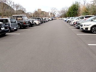 | 早くも混み合う鏡岩緑地駐車場 | めい想の小径入口 | めい想の小径登山口 |