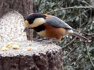 | 餌に寄って来たシジュウカラ | 餌に寄って来たヤマガラ | 手から餌を食べるヤマガラ |